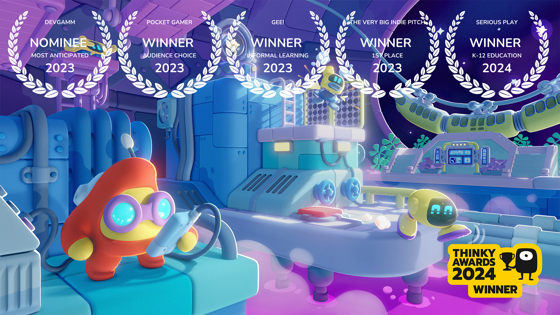 “Their coding mechanics and bot interactions immerse the player in procedural logic & systems thinking while keeping the programming mechanic simple & fun…As players move through the game, they gain confidence by having the agency to easily experiment with new mechanics and practice breaking down big problems one step at a time.”